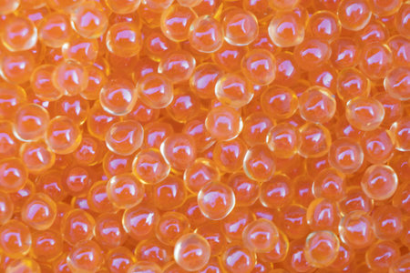 Background texture of salmon fish red caviar. Macro shot trout caviar texture pattern.