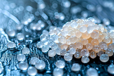 Crystal Clear White Background with Scattered Transparent Absorbent Beads in Stunning 8K Commercial Photography, created with Generative AI technology