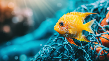 Marine life in peril fish trapped in fishing net, a grim consequence of human waste