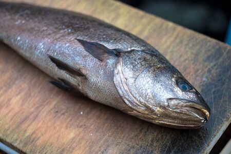 Whole fish scaled ready to fillet side view seafood kitchen detail natural clean light