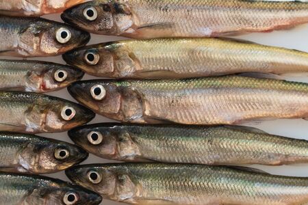 Fresh fish catch of the day creating an interesting seafood background texture.