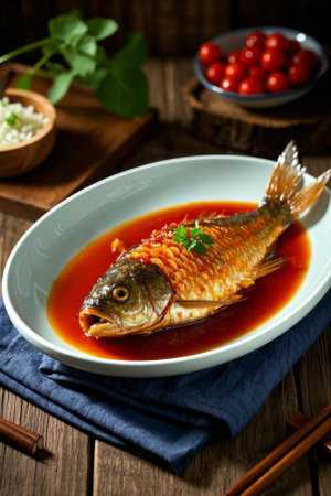 Korean traditional food, steamed fish with sweet and sour sauce