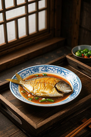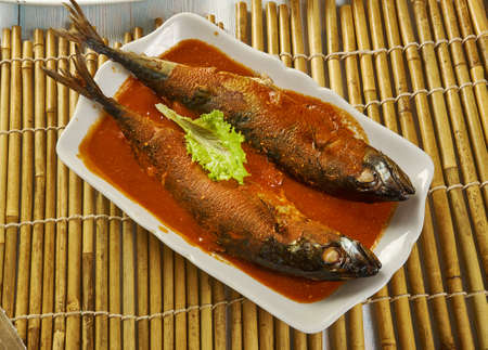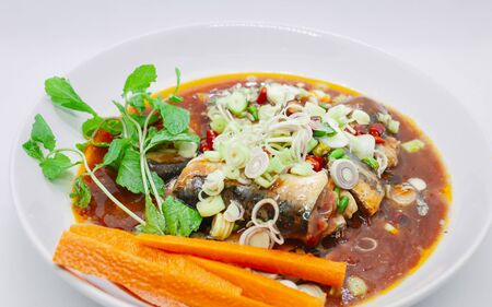 boiled salty and sweet mackerel fish sauce soup on plate
