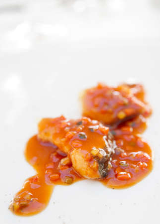 Delicious fish fillets cooked and flavored on a plate