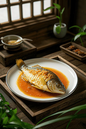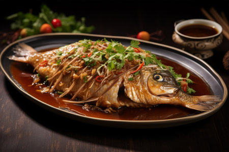 Braised whole fish on a Chinese table