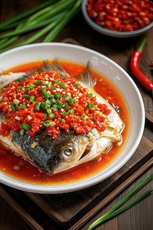 hot spicy steam fish bass food with sauce