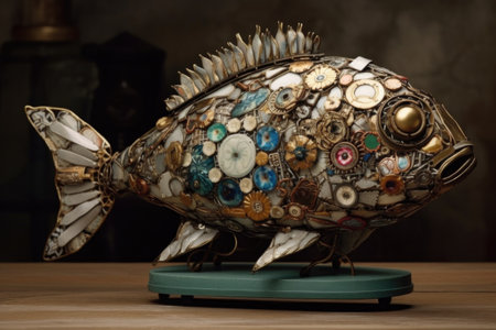 unique sculptures made from recycled materials and found objects, created with generative ai