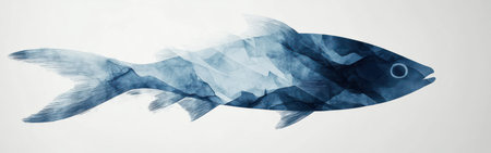 This artistic illustration features a beautifully crafted silhouette of a fish swimming against a dreamy gradient of blue and pink hues, perfect for backgrounds.