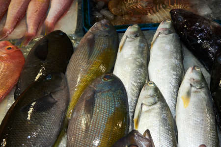 Fresh fish catch of the day creating an interesting seafood background texture.