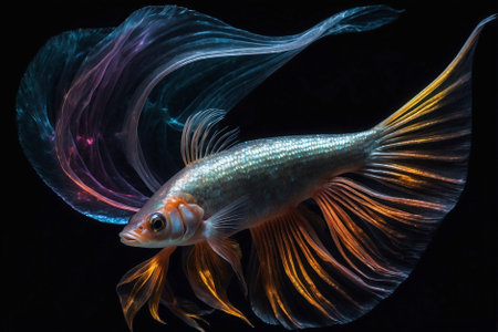 An AI generated illustration of a beautiful colorful fish on a dark background