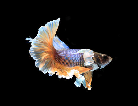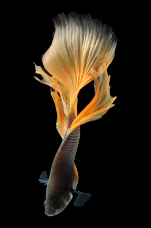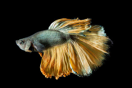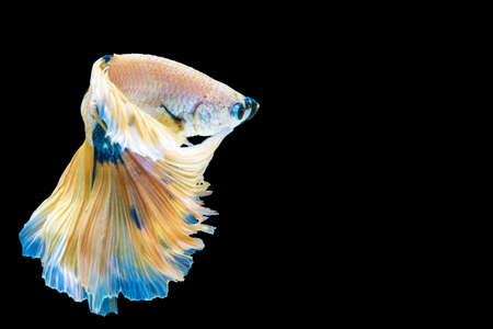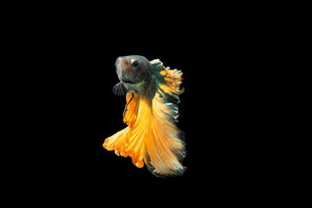Capture the moving moment of yellow siamese fighting fish isolated on black background. betta fish.