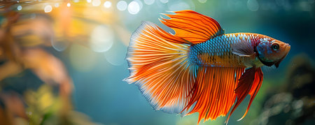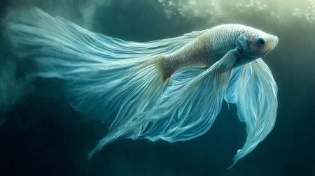 A stunning betta fish glides through the water, showcasing its vibrant colors and flowing fins. This serene underwater scene captures the essence of aquatic beauty.