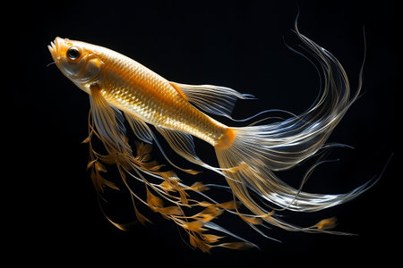 Graceful Movement of Gold Siamese Fighting Fish on Black Background