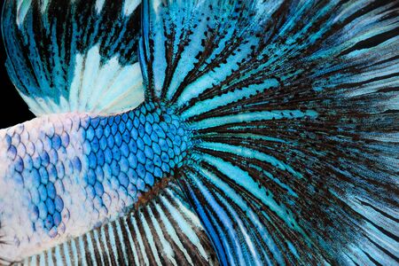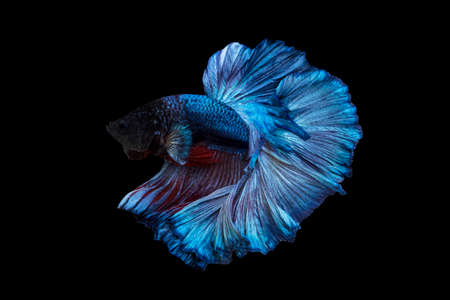 Capture the moving moment of blue siamese fighting fish isolated on black background. betta fish.