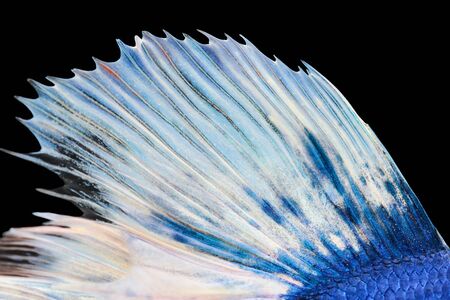Thai Fighters Fish Long tail, white, blue, Yellow Swimming looks daunting and aggressive. On black isolatde background