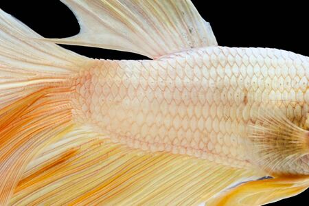 Close-up moment fish betta halfmoon Yellow mixed gray black background scenes