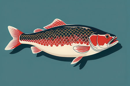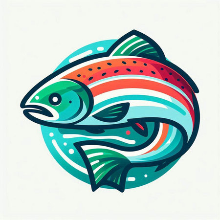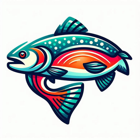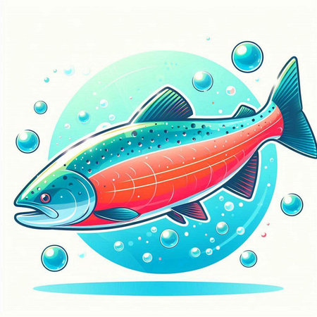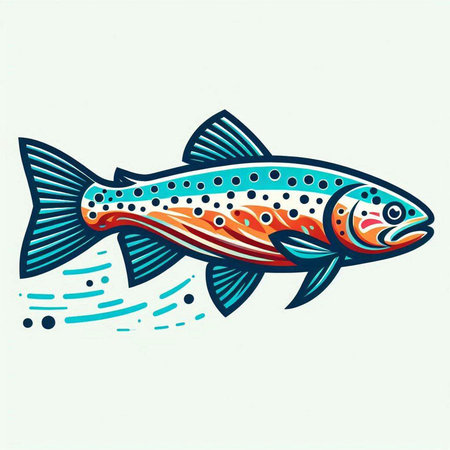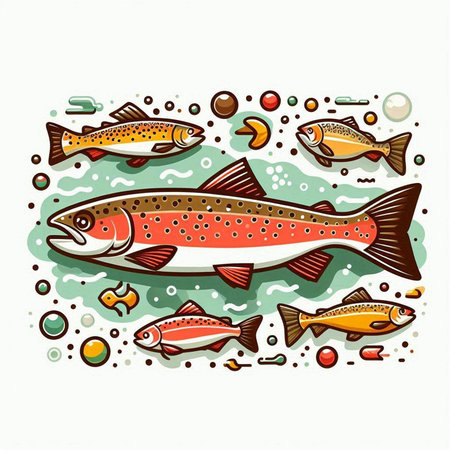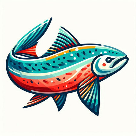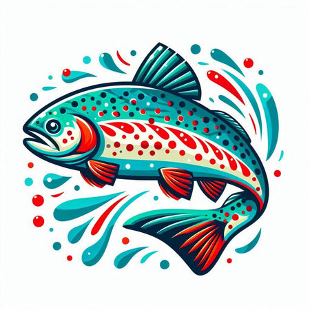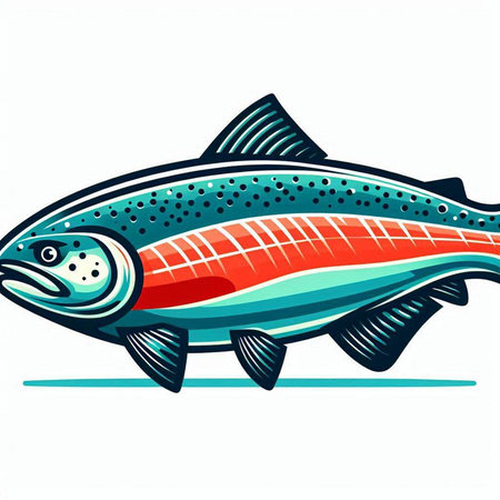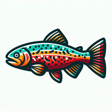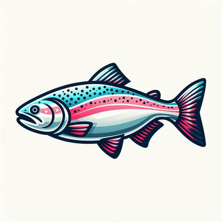 Illustration of a rainbow trout fish isolated on a white background.