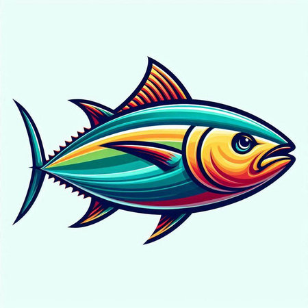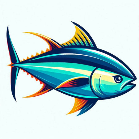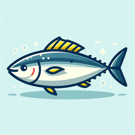 Illustration of a tuna fish in cartoon style on a blue background