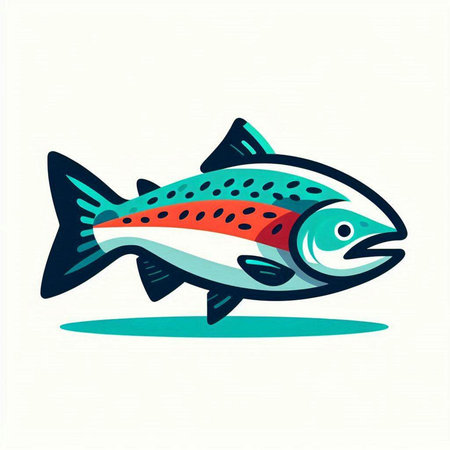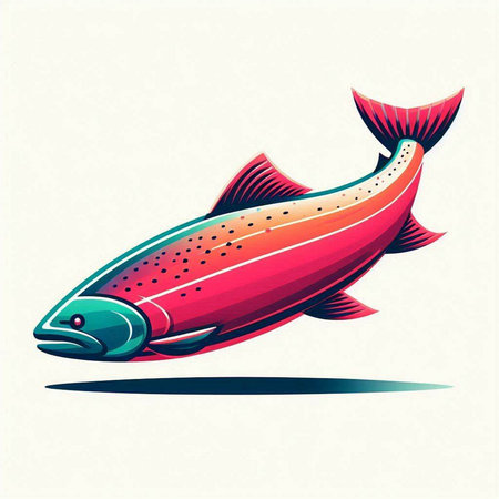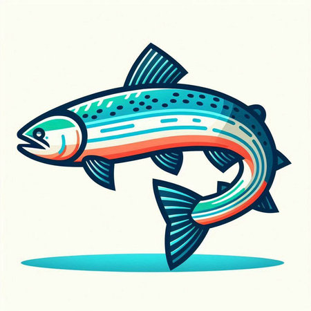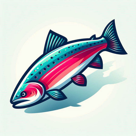 Illustration of a rainbow trout fish on a white background with long shadow