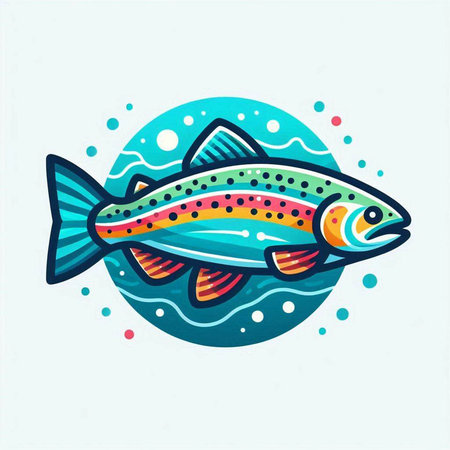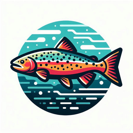 Colorful vector illustration of a rainbow trout fish in a circle.