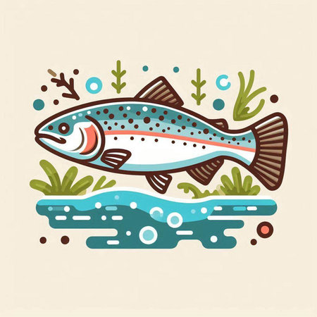 Colorful vector illustration of a rainbow trout fish in the water.