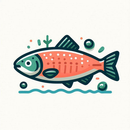 Illustration of a salmon fish isolated on white background done in cartoon style.