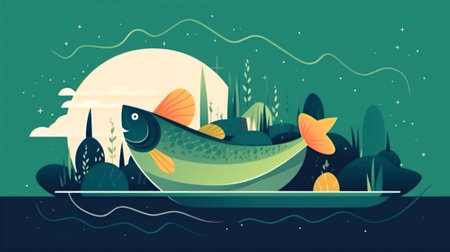 Illustration of a fish on a yellow background, vector illustration. ai generative