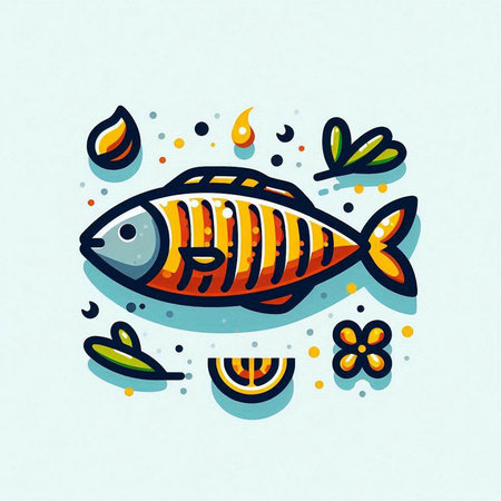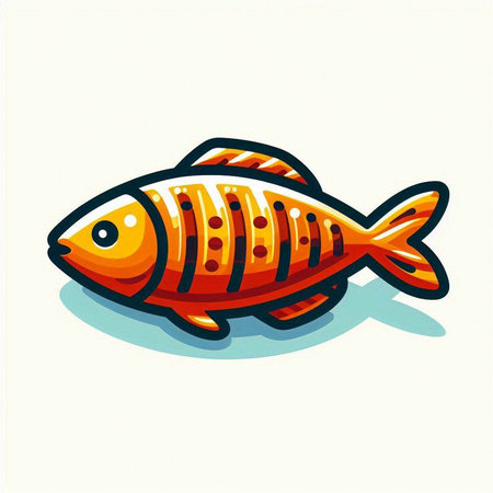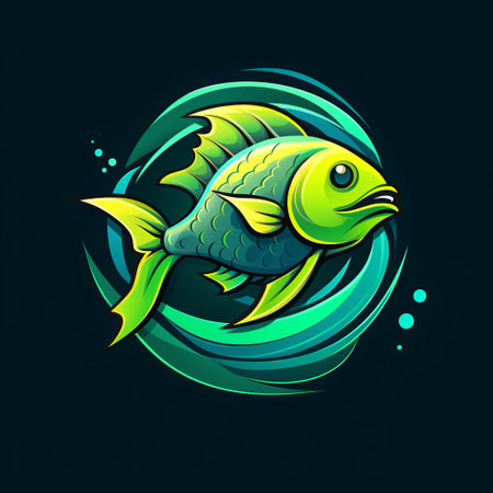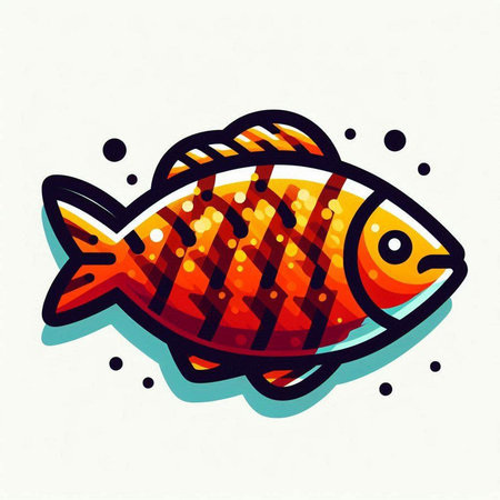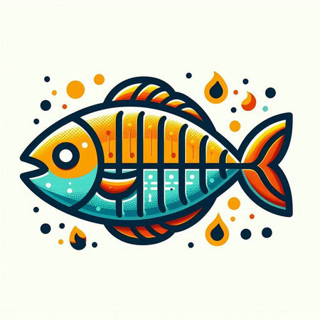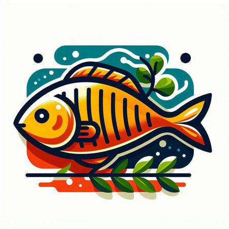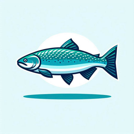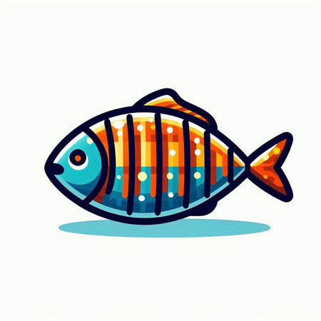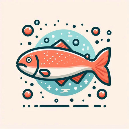 Vector illustration of a fish icon on a turquoise background.