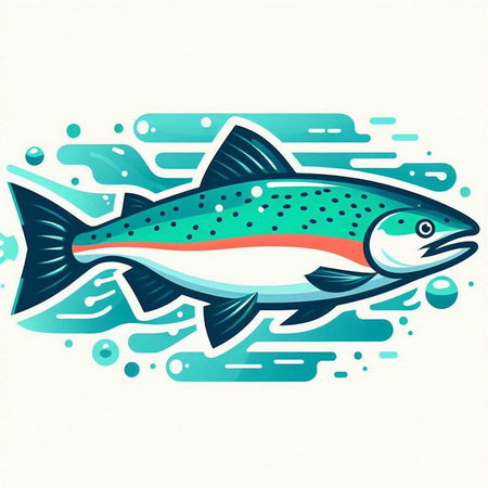 Rainbow trout fish on a turquoise background. Vector illustration.