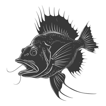 Vector image of a big fish on a white background. Black and white graphics.