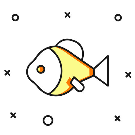 Filled outline Fish icon isolated on white background. Flat filled outline style with shadow. Vector.