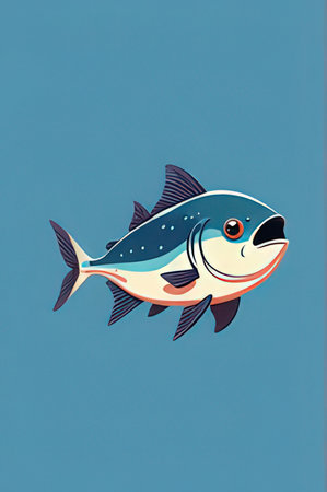illustration of a fish on a blue background in a cartoon style