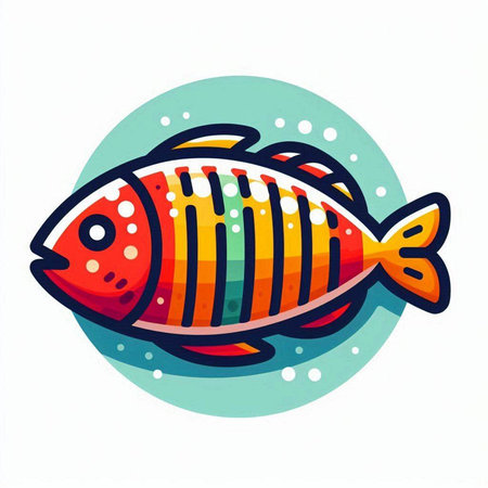 Vector illustration of a colorful fish in a circle on a white background