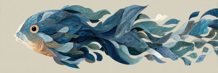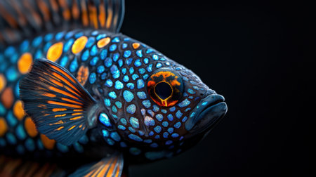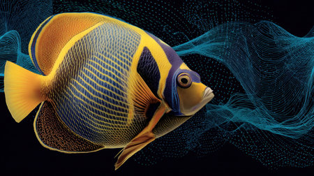 A detailed image presents a fish with a striking design. The fish exhibits shades of blue and gold across its scales. The composition likely aims to captivate, making it suitable for editorial and commercial applications such as artistic illustrations or fantasy-themed projects. The image uses close-up focus to highlight texture and patterns.