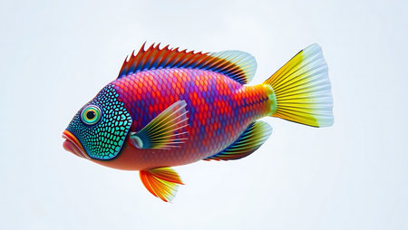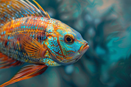 Discover a stunning digital artwork of a vibrant fish swimming through an abstract background. This colorful representation highlights the beauty of underwater life and creativity.