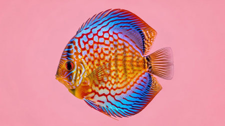 Colorful freshwater fish swimming gracefully in an aquarium with vibrant lighting
