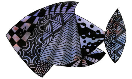 Colorful Watercolor Cute Fish with Zenart Style. Hand Drawn Fish Isolated on White Background.