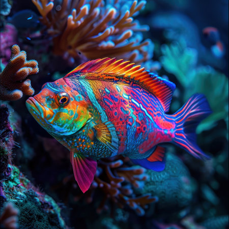 Explore the beauty of underwater life with this stunning image of a vibrant fish swimming gracefully in a coral reef habitat, showcasing the vivid colors of nature.