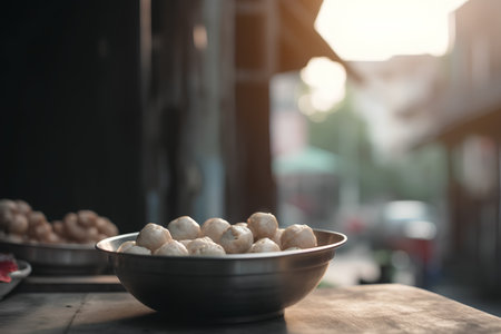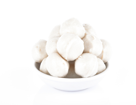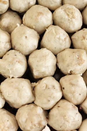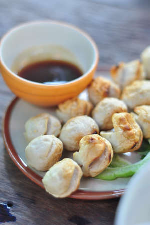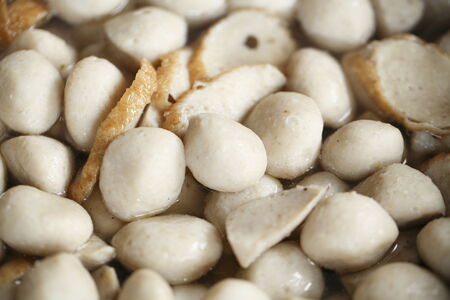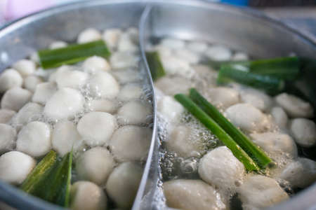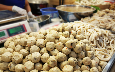 Boiled meatballs eat with spicy seafood sauce. Thai food.
