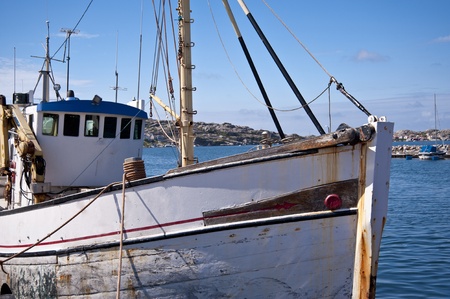 Old fishing boat on the water in the port of Essaouira, Morocco