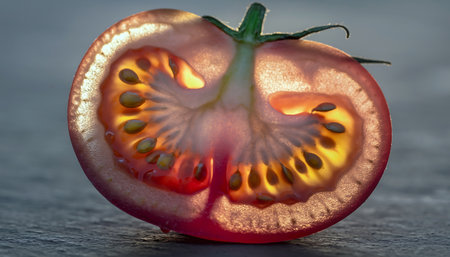 macro cut tomato on a black background