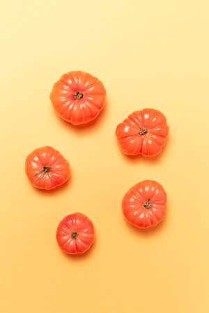 Close-up of pink tomatoes on background of pastel yellow color.
