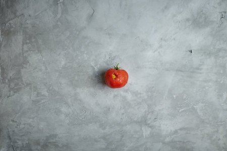 One fresh juicy tomato on a gray background