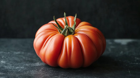 Tomatoes in the shape of a bull's heart on a dark background.one beef tomato, highlighted on a black background with large ripe red ribs. Tomatoes Cuore di Bue, highlighted on a contrasting background