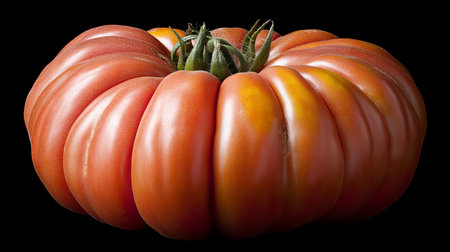 Ripe Heirloom Tomato, Isolated on Black, Juicy Red and Orange Hues, Smooth Skin, Vibrant Color