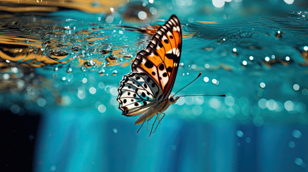 blue beautiful butterfly under water at seaground