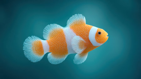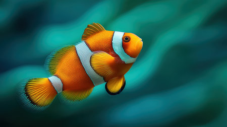 A stunning clownfish gracefully swims through a colorful underwater scene. The vibrant orange and white hues contrast beautifully with the soft blue background. Perfect for nature lovers.