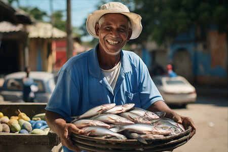 Cuban Vendor: Showcasing Fresh Fish for Sale in Vibrant Cuba -- AR 3:2