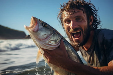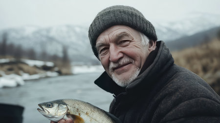 Master Angler Proudly Displaying Freshly Caught Fish - AR 3:2