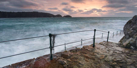2013 Low light long exposure of a beach in cornwall showing over saturated colours